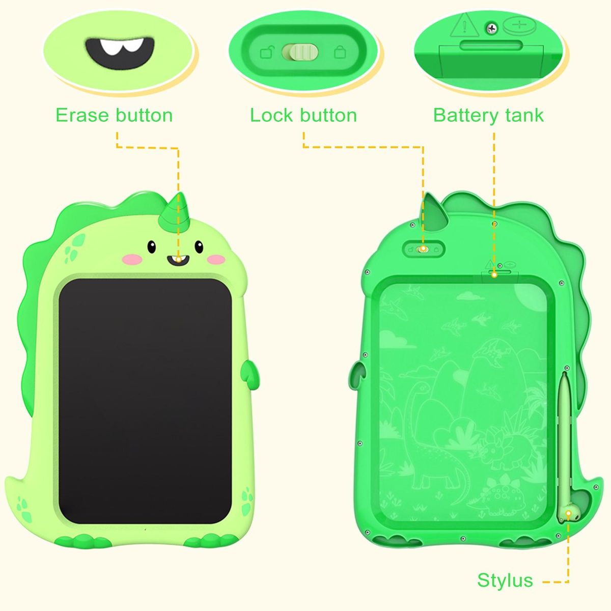 Our lcd writing tablet comes with an erase button and screen lock feature, making it perfect for toddlers of all ages. with just a second, you can clear the screen and start anew. additionally, the lock button on the back prevents accidental erasure, protecting your child's creations.