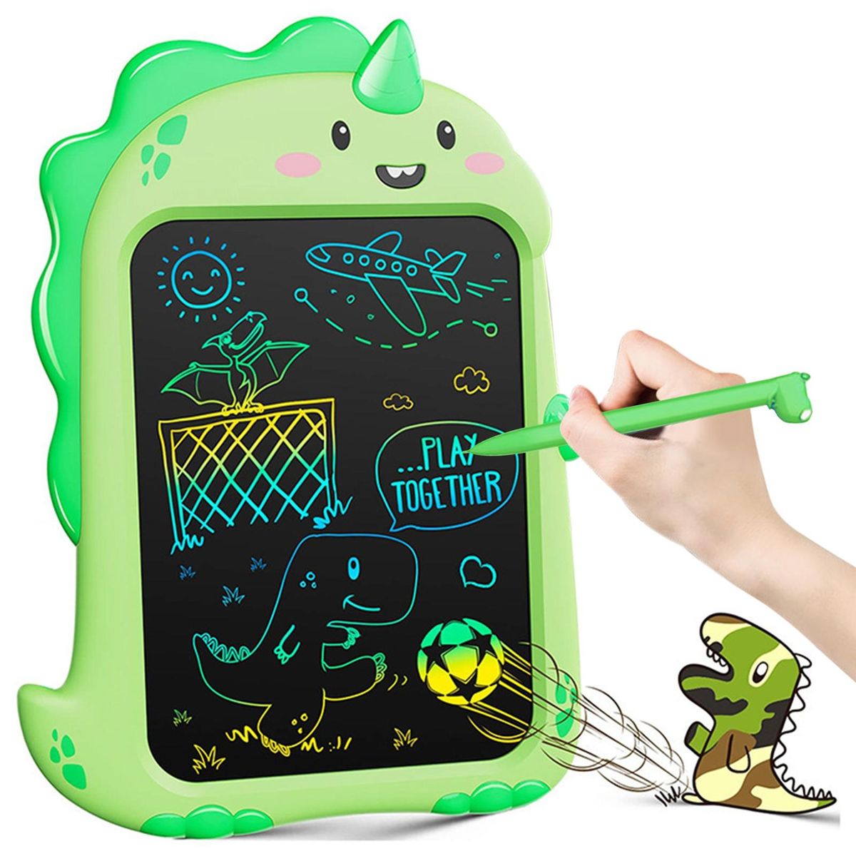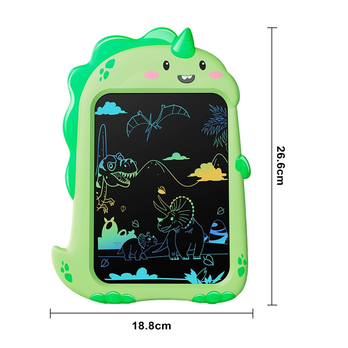 Designed in a fun dinosaur shape, this drawing board can be used for drawing, writing, doodling, taking notes, practicing letters, or even as a message board. it's versatile and suitable for various activities.