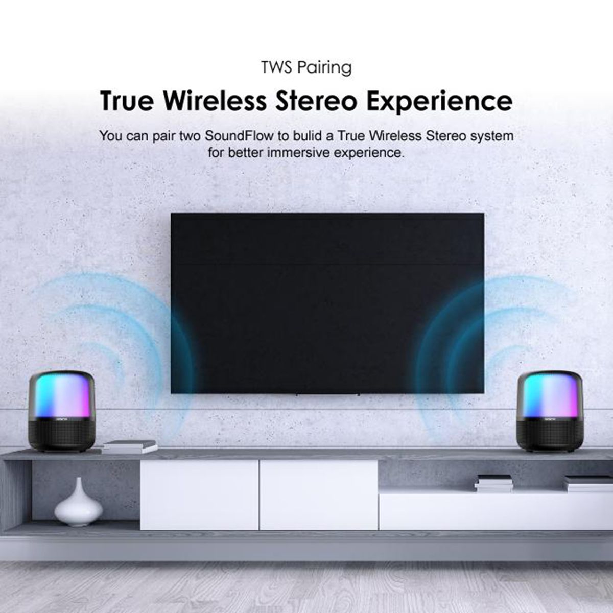 You can pair two SoundFlow to bulid a True Wireless Stereo system for better immersive experience.