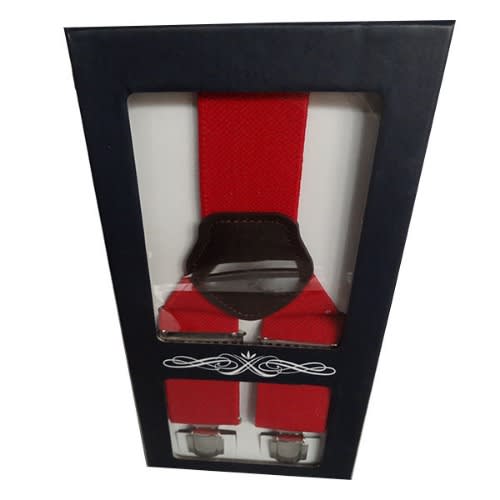 Men's Leather Suspenders - Alloy 6 Clips - Striped Red