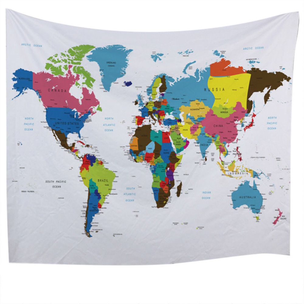 This Colorful World Map Tapestry has desirable properties such as stain resistance, breathing ability, wrinkle resistance, luxurious appearance and easy cleaning. It makes a wonderful gift for your friends and family.