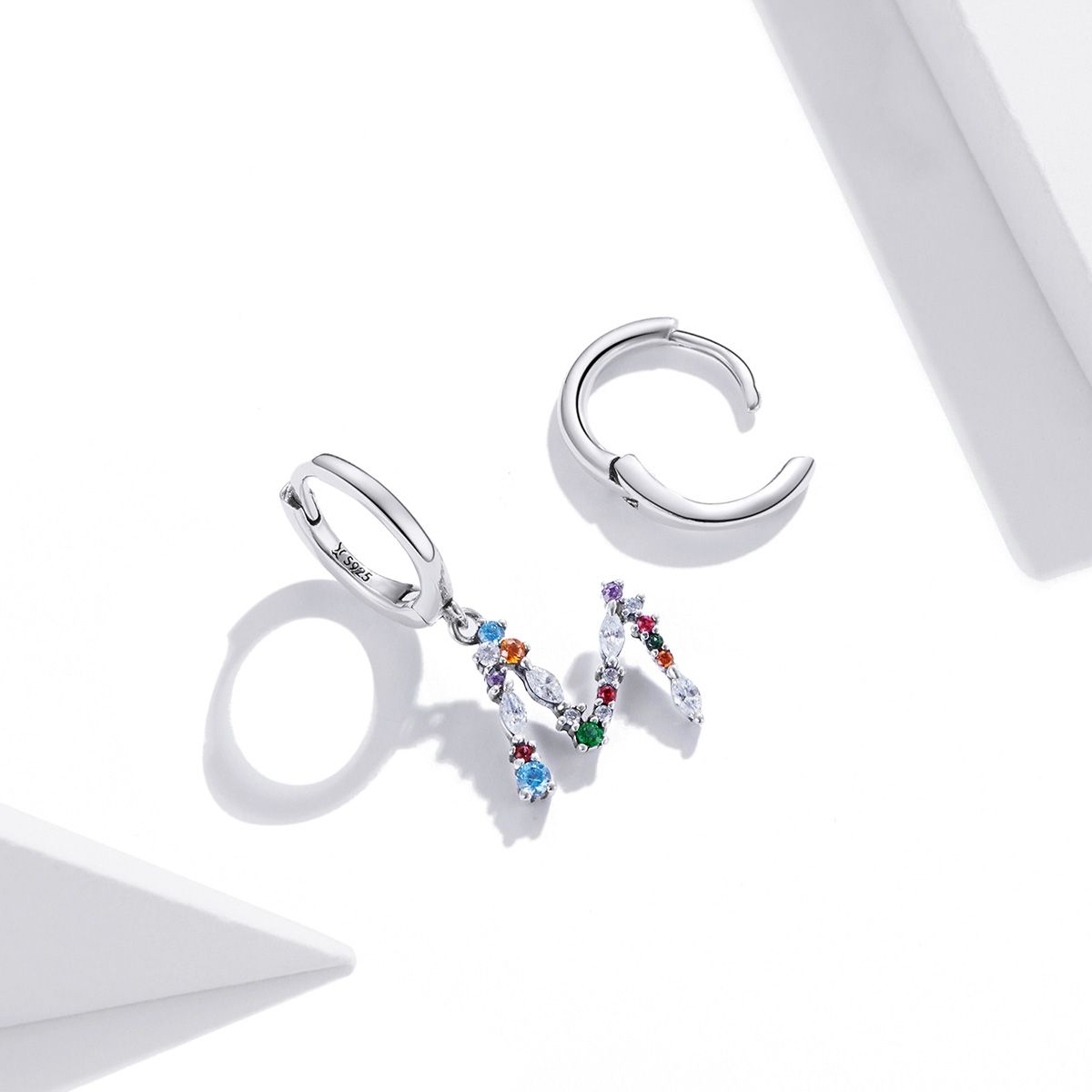 Colorful Zircon Letters M Asymmetry Women Earrings