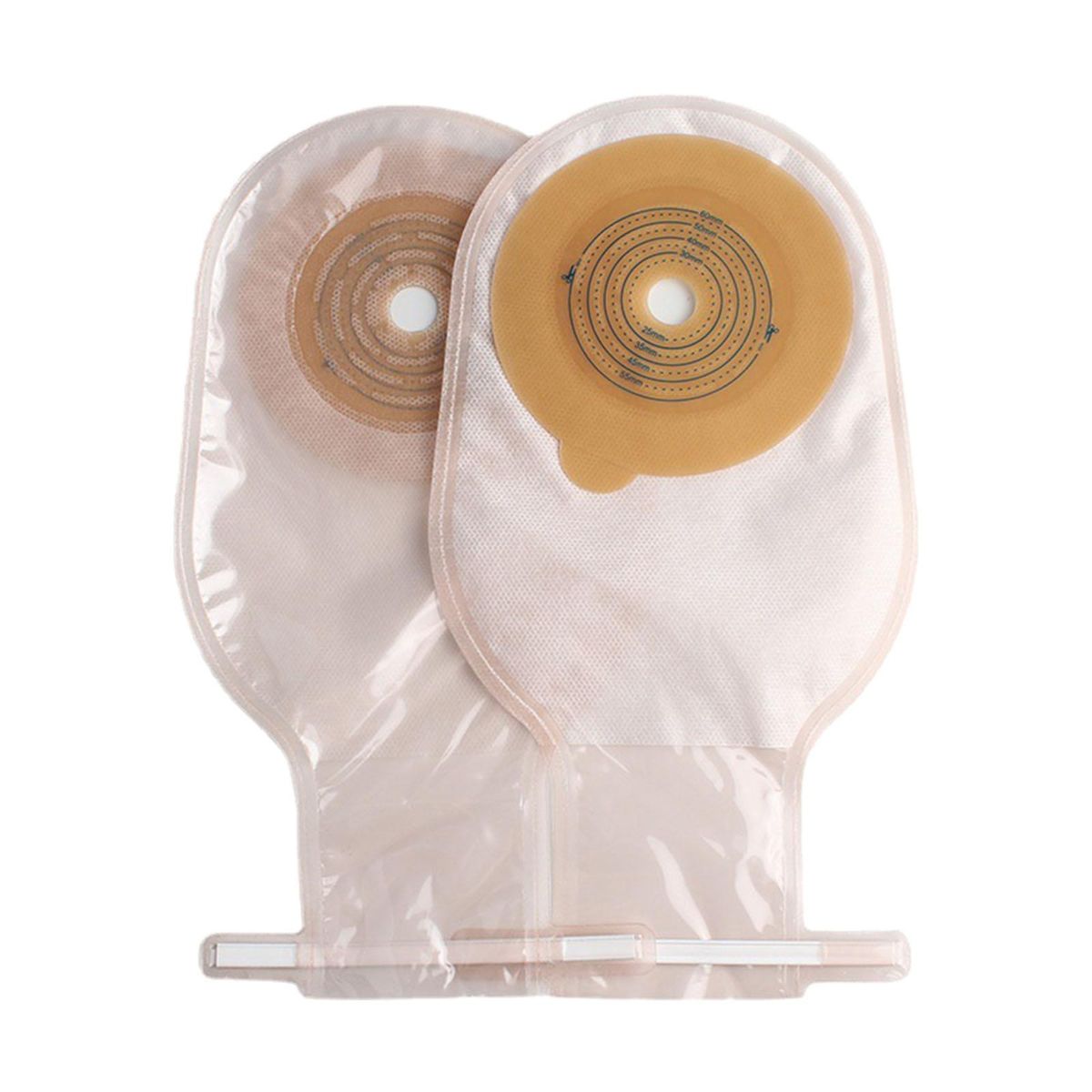 One Piece Design: Simple and convenient to use, easy to operate and replace.Material: Made of high quality adhesive and non woven fabric material, more friendly to skin.Soft and comfortable, reduce friction effectivelyMax cut is 20-60mm, used for patients with new ostomy or regular ostomy.The ostomy bags are made of film, which has strong odor barrier ability.