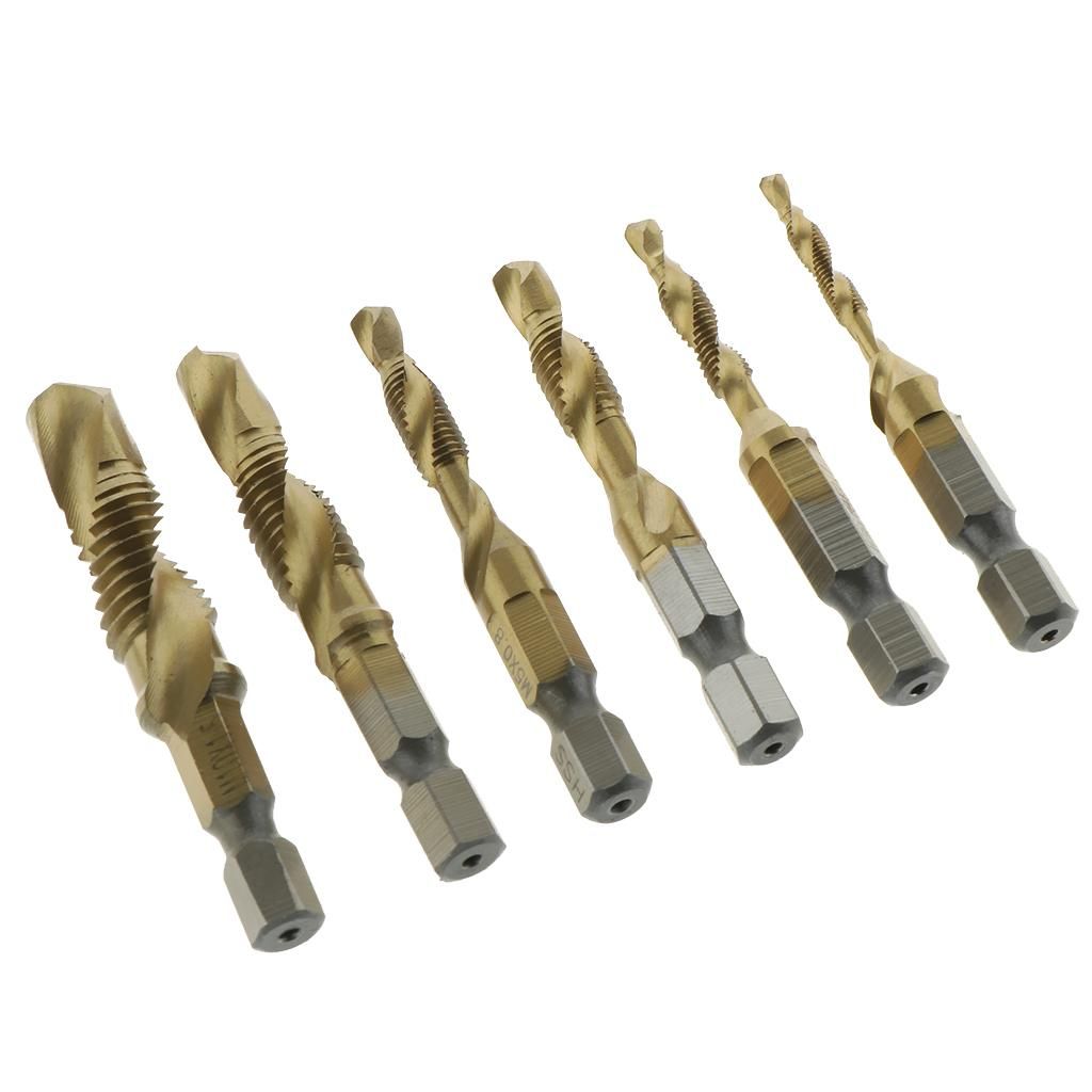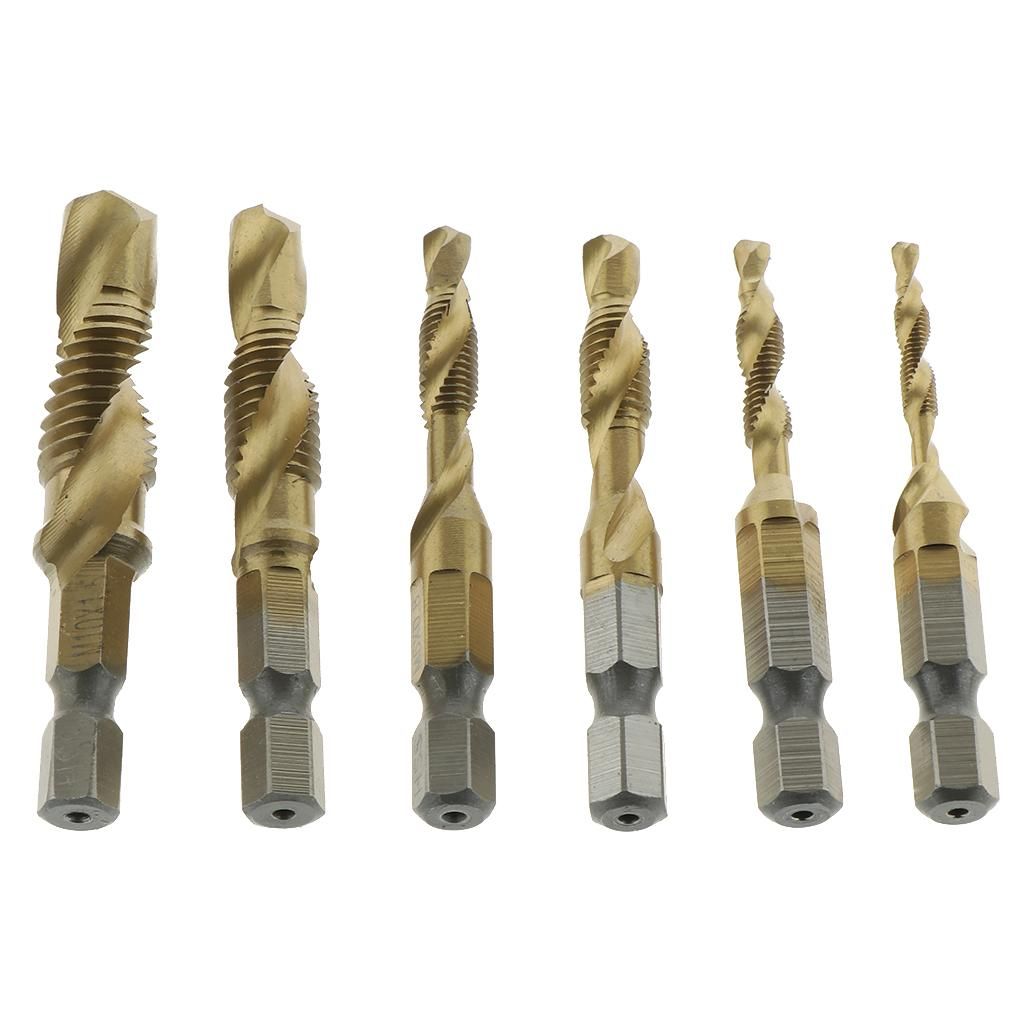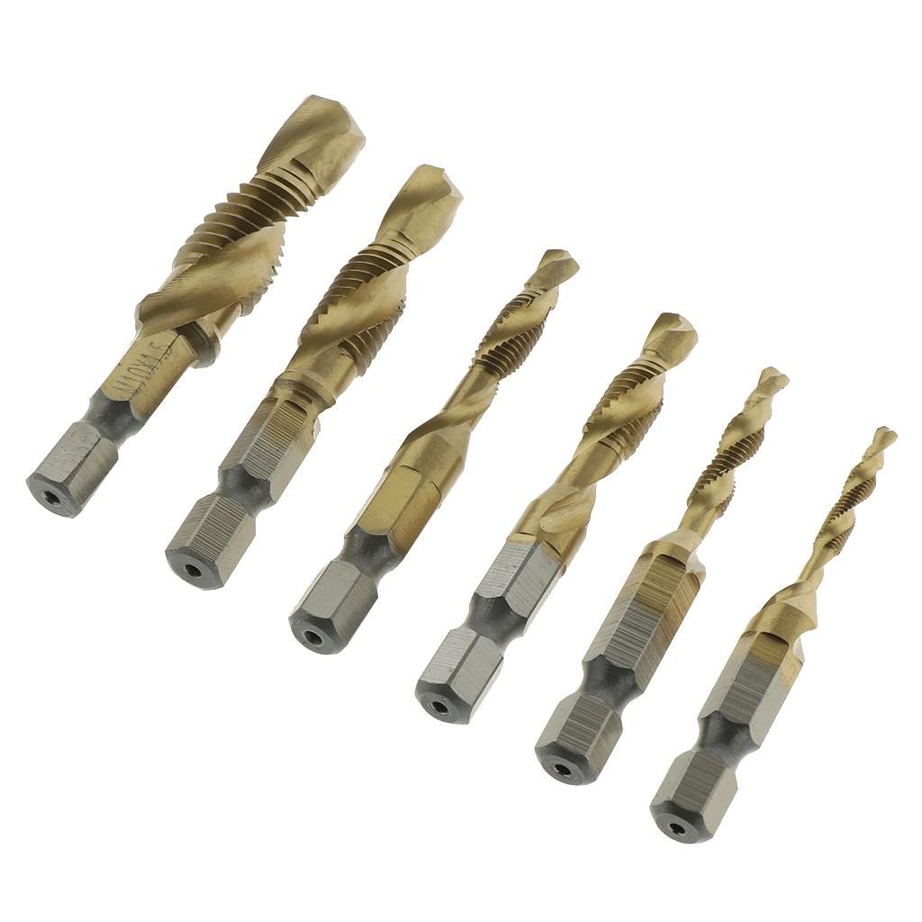 --High Speed Steel - Made of high quality 4341 HSS for durability; --Suitable for drilling and tapping in aluminum, brass, copper, plastic, wood, steel, etc.--Three Functions in One Bit - Drill, tap and countersink in a single pass to save your labor and precious time; The point is self-centering and eliminates the need for center drilling or center punching-- Shank - Quick-change 1/4inch (6.35mm) shank with SAE sizes engraved on the tap drills for easy recognition.--Spiral Flute - Wide flutes carry the chips out of the hole. These combination tap and drill bits can be used on multi-spindle heads with mechanisms for tapping in most materials.
