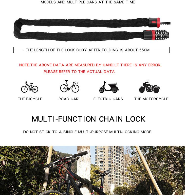 Long Chain: The bike lock is designed with a long chain, which is convenient for you to use.