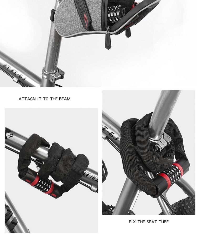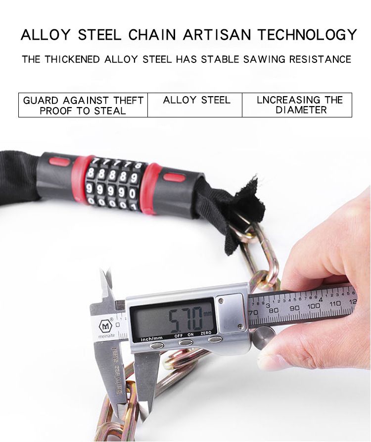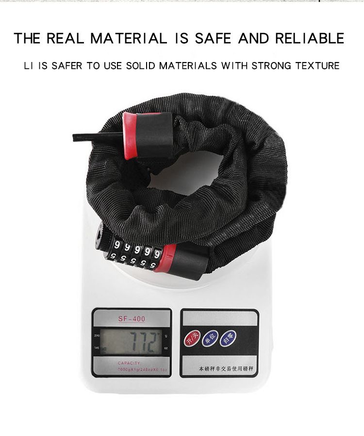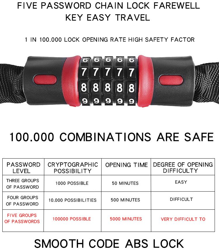 The bike lock enjoys a 5-digit code combination, and the lock opening rate is 1/100000.