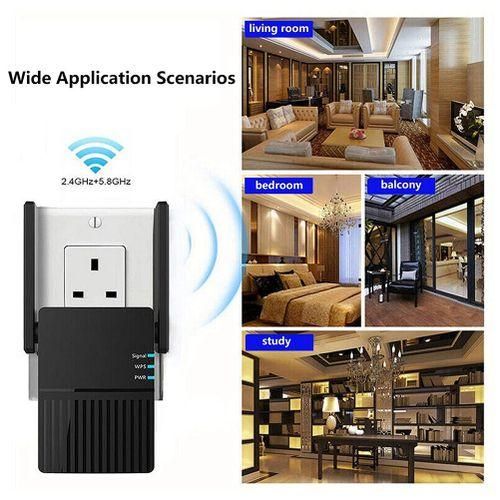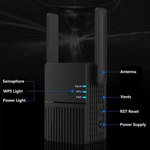 [High-Speed Wi-Fi]: Wifi extender can provide high-speed and compatible transmission rate through dual-band technology. The maximum speed at 5GHz is 867Mbps, and the maximum speed at 2.4GHz is 300Mbps. There is no delay in the performance of movies, high-definition video streaming, online games and video chats.