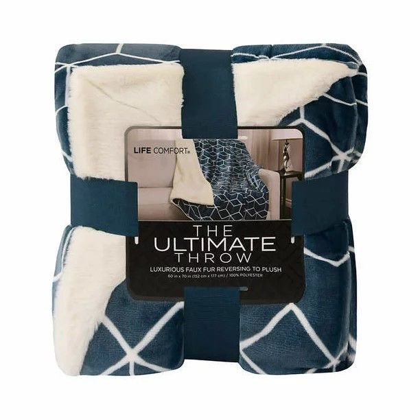 Ultra-soft with a simple, elegant style, the Life Comfort Ultimate Faux Fur Throw is the perfect way to give your space a sophisticated update. It reverses to an ultra-soft printed velvet for two beautiful looks in one.Life Comfort Ultimate Faux Fur Throw White-Blue. Size 60"x 70"Ultra-soft with a simple, elegant style, the Life Comfort Ultimate Faux Fur Throw is the perfect way to give your space a sophisticated update. It reverses to an ultra-soft printed velvet for two beautiful looks in one.