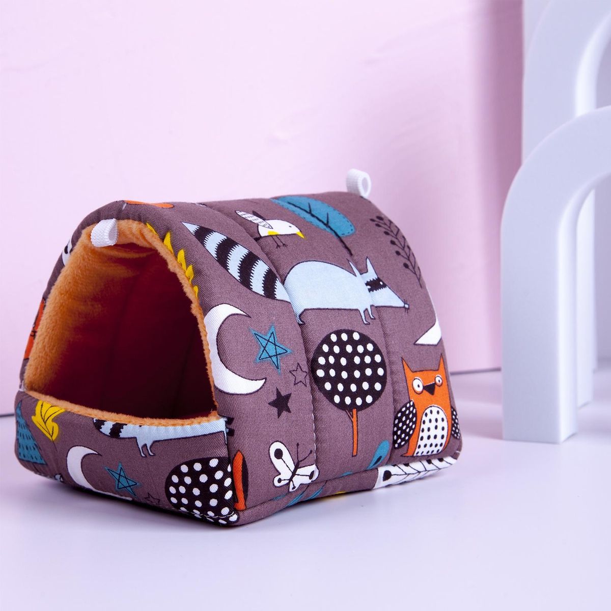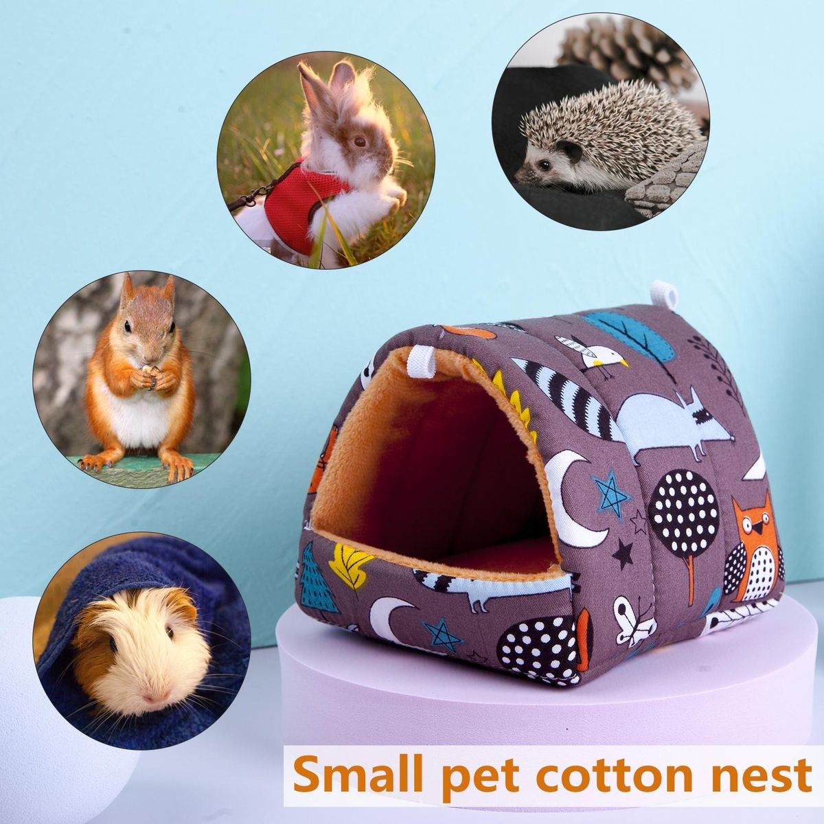 Our cozy and durable pet nest, perfect for keeping your furry friends warm and comfortable during the colder months. made with soft and thick fabric, this nest provides excellent insulation while also being resistant to scratching and biting, ensuring long-lasting use. the semi-enclosed design offers a private and secure sleeping place, allowing your pets to feel safe and relaxed. the easy-to-enter opening and stable shape make it convenient for your pets to enter and exit the nest. plus, the playful cartoon pattern adds a touch of fun to your pet's living space. the three-dimensional support prevents collapsing and deformation, ensuring that the nest maintains its shape over time. suitable for dwarf rabbits, guinea pigs, ferrets, hedgehogs, hamsters, squirrels, and other small animals of similar size. give your furry friend the gift of comfort with our cozy pet nest!