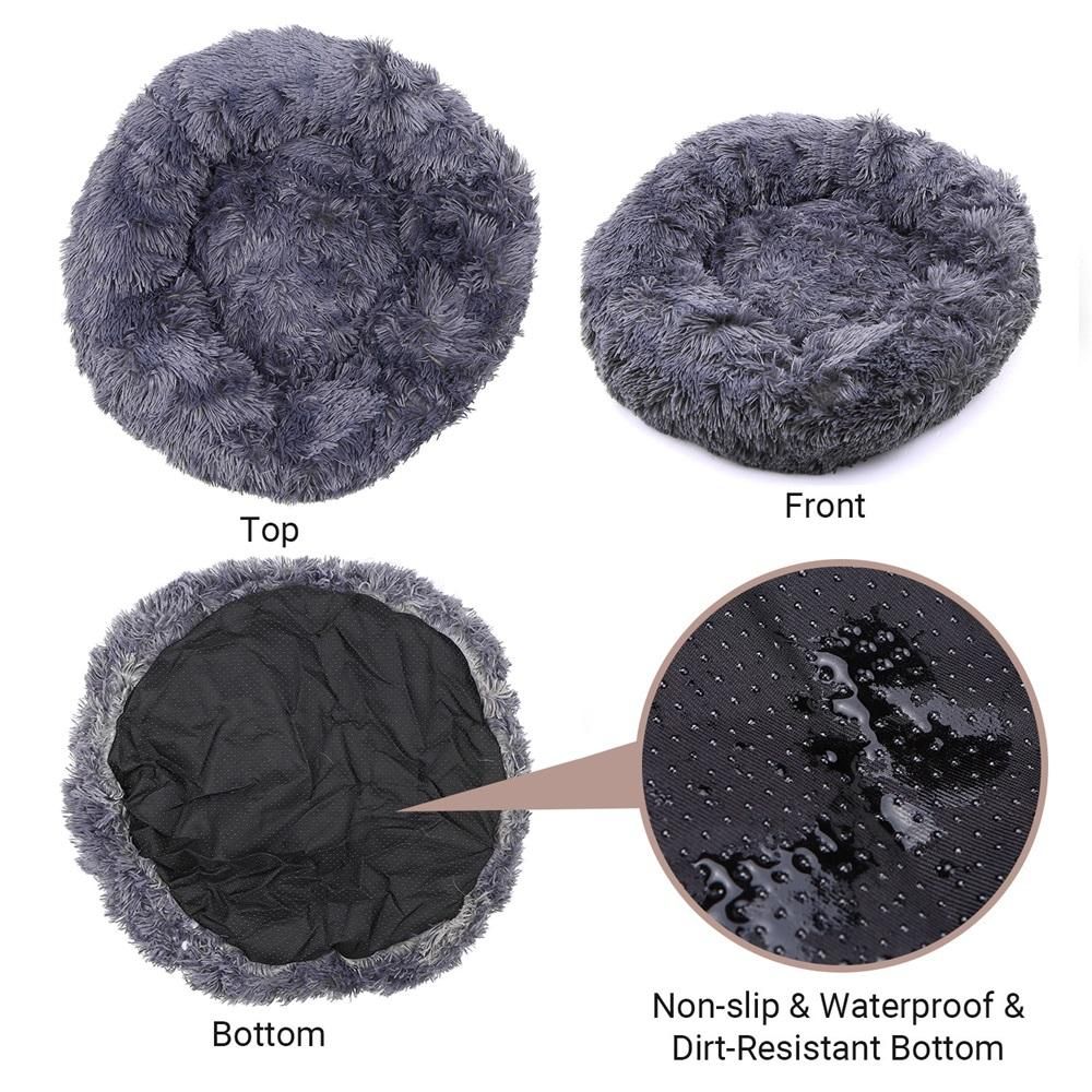 Buy Comfortable Plush Round Pet Bed for Dogs Cats Soft Fur Donut Anti-slip Waterproof Base Washable Self Warming Cushion Bed Multiple Sizes Dark Gray 4XL 110CM in Nigeria