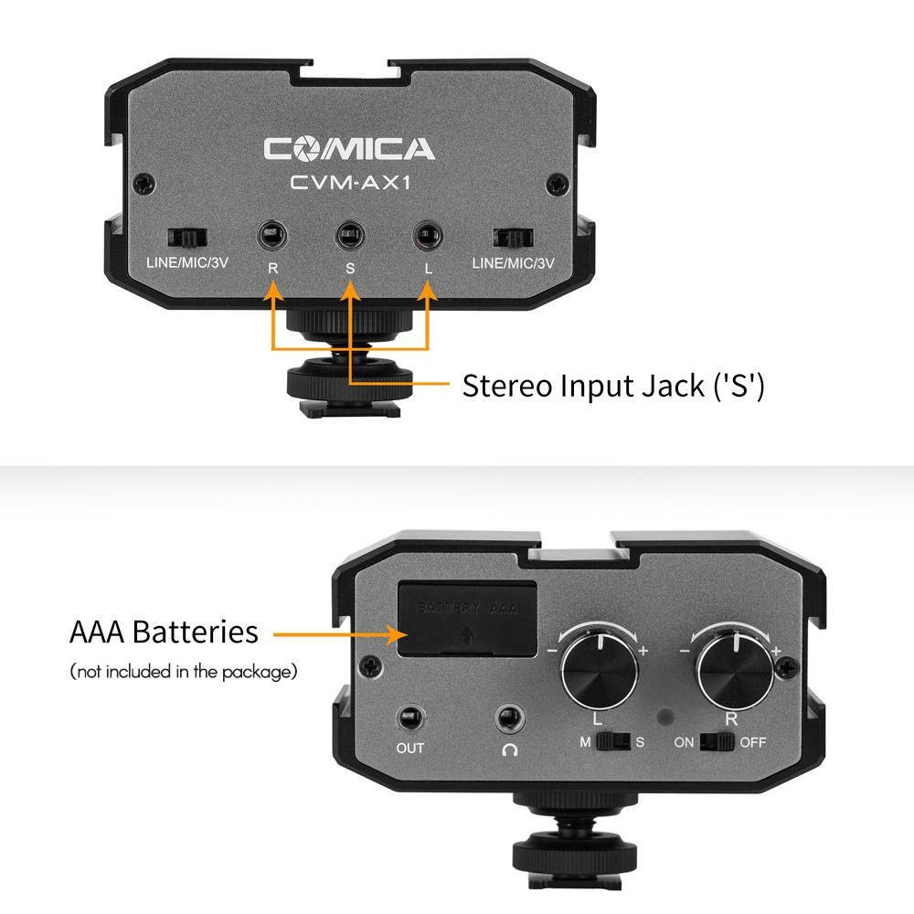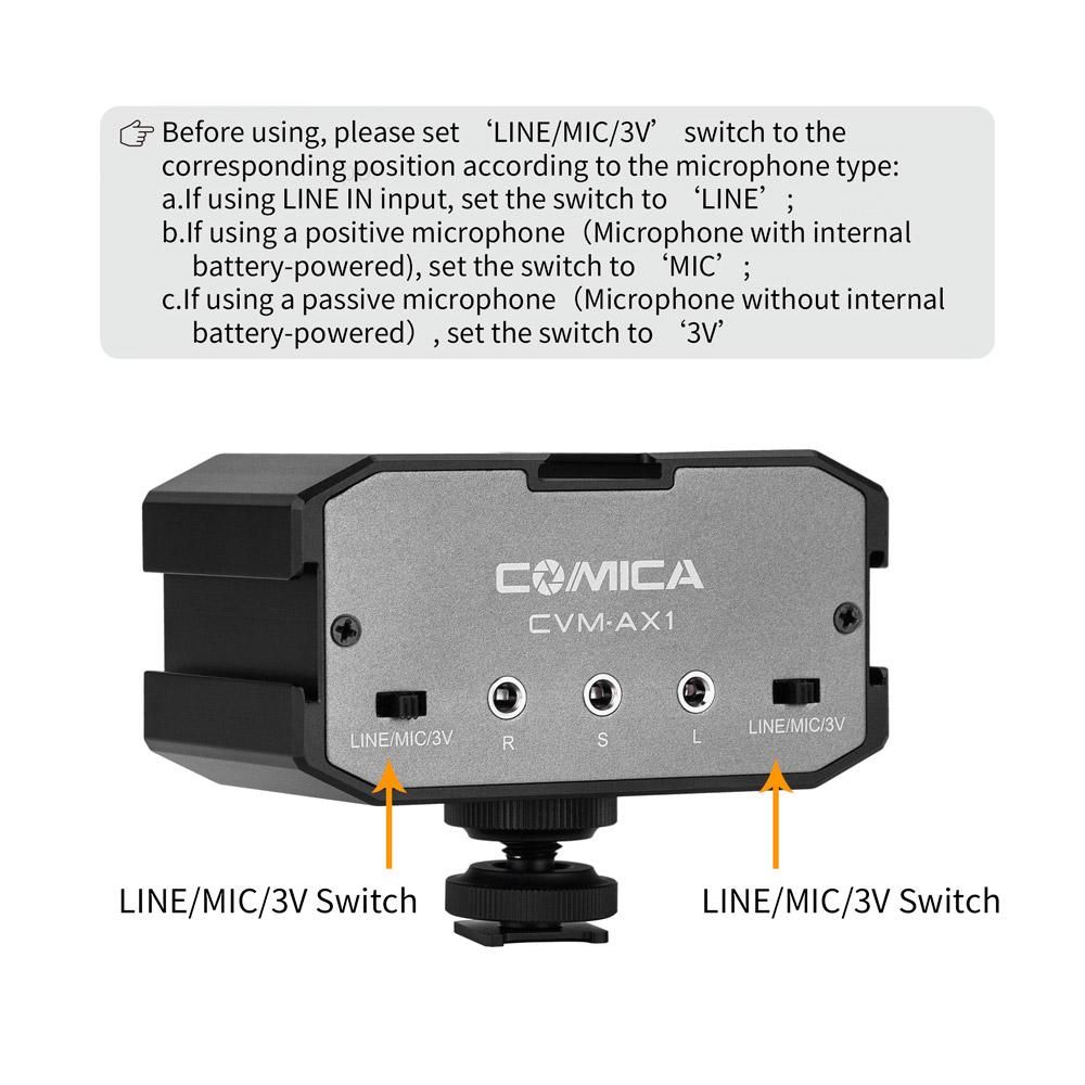 Buy CoMica CVM-AX1 Audio Mixer Adapter Universal Dual Channel 3.5mm Port Mixer Support Real-time Monitoring Mono/Stereo Output Switch for DSLR Camera Camcorder for 3.5mm Positive & Passive Microphone in Nigeria
