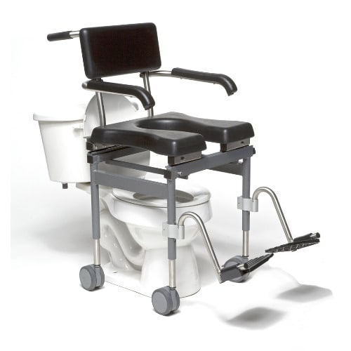 Arm Rest Detachable For Ease Of Movement In And Out Of ChairThe commode and shower chair can be equipped with 24" rear wheels with parking brakes. In the 24" wheel kit is included 2 brakes with clamps and brackets for the fitting of the wheels on the frame. Pre-drilled holes make the mounting of the wheels very easily.