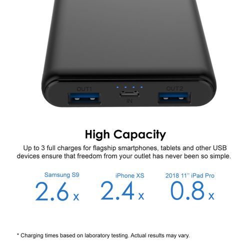 It comes with Type-C and Micro-USB recharging ports. Juice up your po wer b ank with any cablethat you happen to have on hand.