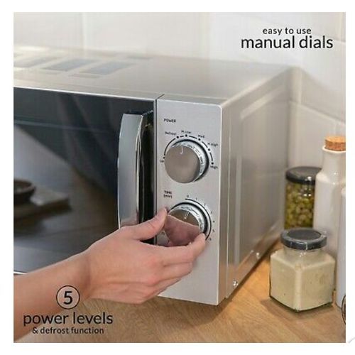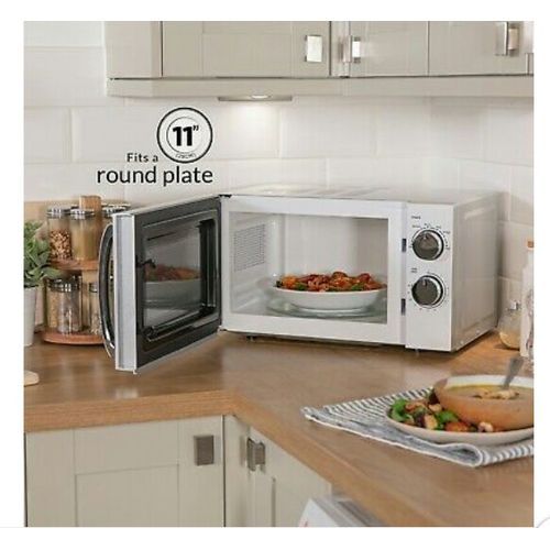 Once you have prepared the microwave for first use, simply place your food in suitable cookware, open the door and position onto the assembled turntable. Next all you need to do is select a power level and the cooking time required by turning the easy to use dials, found on the control panel. The internal microwave light lets you know that cooking is in progress.