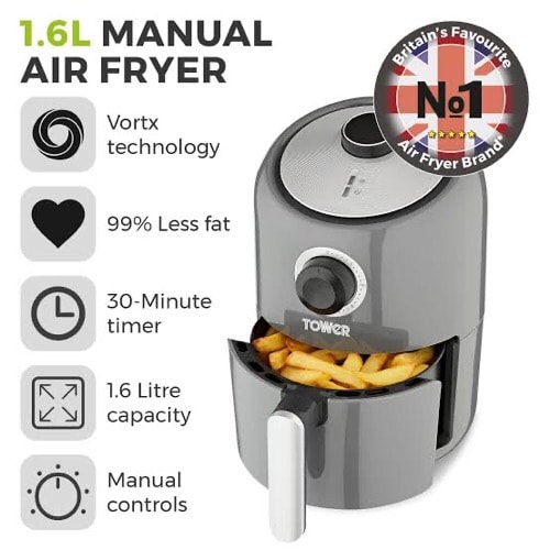 Buy Compact Air Fryer With 30 Minute Timer - 1000W - 1.6L - Grey in Nigeria