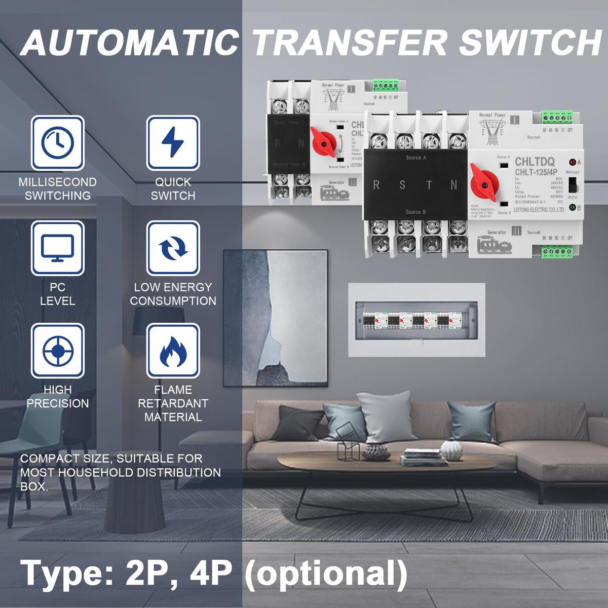 Buy Compact Automatic Transfer Switch Electrical Selector Switches Dual Power Switch Solar Power Rail Type Household Power Transfer Switch in Nigeria