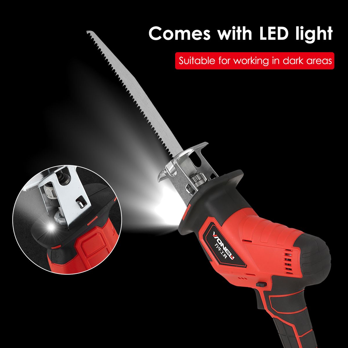 Cordless design - The Reciprocating Saw is designed to be cordless, compact and lightweight, which allows flexibility and freedom of movement when working, easy to use.