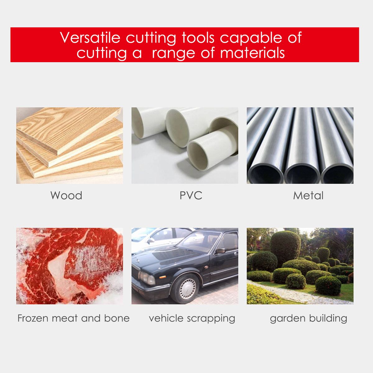 features cordless and compact design and is powered by 21v lithium batteries. It\'s capable of cutting various materials, such as wood, metal, PVC and frozen meat and bone, powerful and reliable to meet your different needs.