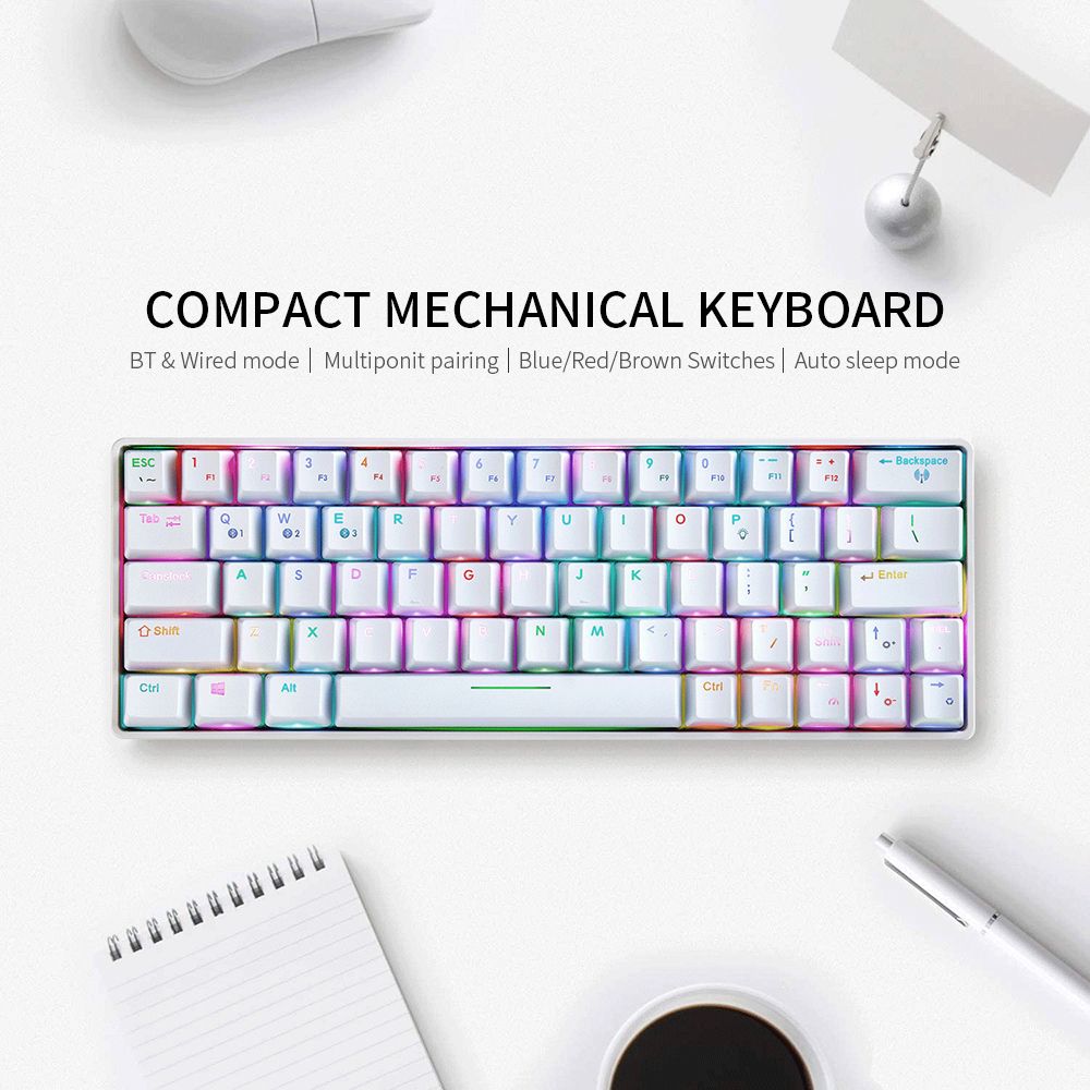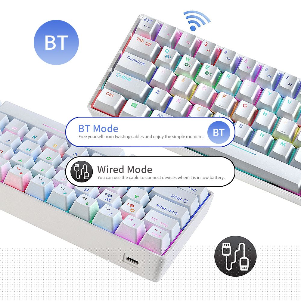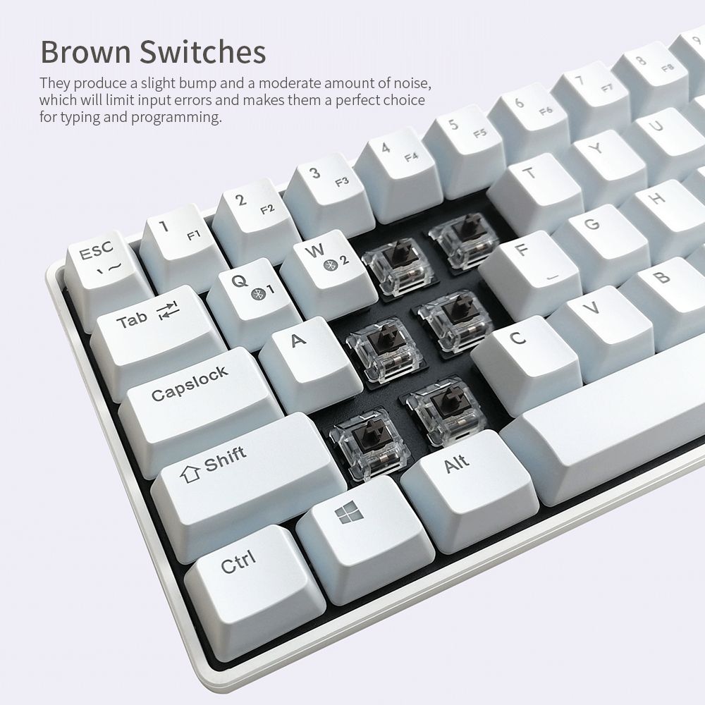 Compact keyboard design. With only 64 keys, it performs the functions of 104 keys. Not only dose it save your space on your table, but also meets your needs.