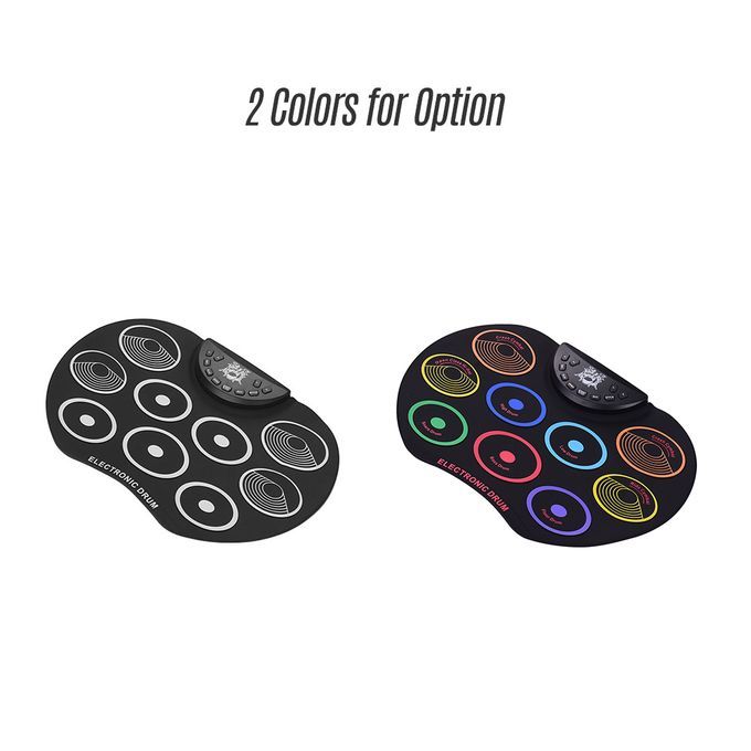 With 9 colorful drum pads, including 3 * Tom drum, 1 * snare drum, 1 * bass drum, 3 * cymbal, 1 * Hi-hat, providing you with excellent drum sounds; supports connecting foot pedal to make you playing more flexible.