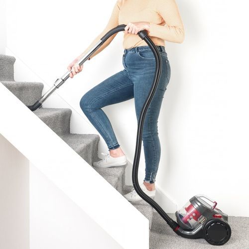 Measuring just 36l x 25w x 29.5h cm for conveniently compact storage, the lightweight vacuum also has a bagless 2 litre dust container.
