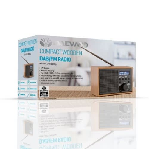 The Daewoo Compact Wood Radio is a modern take on the traditional radio, combining retro design with the contemporary option of DAB/FM radio. With an LCD display and built-in alarm clock to wake you up to your favourite stations, it's the perfect bedroom addition. The radio can be powered either by mains or batteries and, with a 2W output, offers great sound quality to provide hours of listening pleasure.