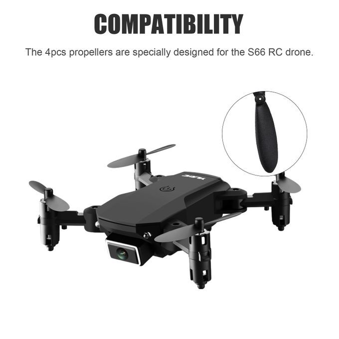 The propellers are perfectly fit for the S66 . Made of superior plastic, these propellers stand wear and tear. The set includes 4pcs propellers that relieve your worries when flying outdoors. The enjoyment will not be disturbed, and the flight is more guaranteed.