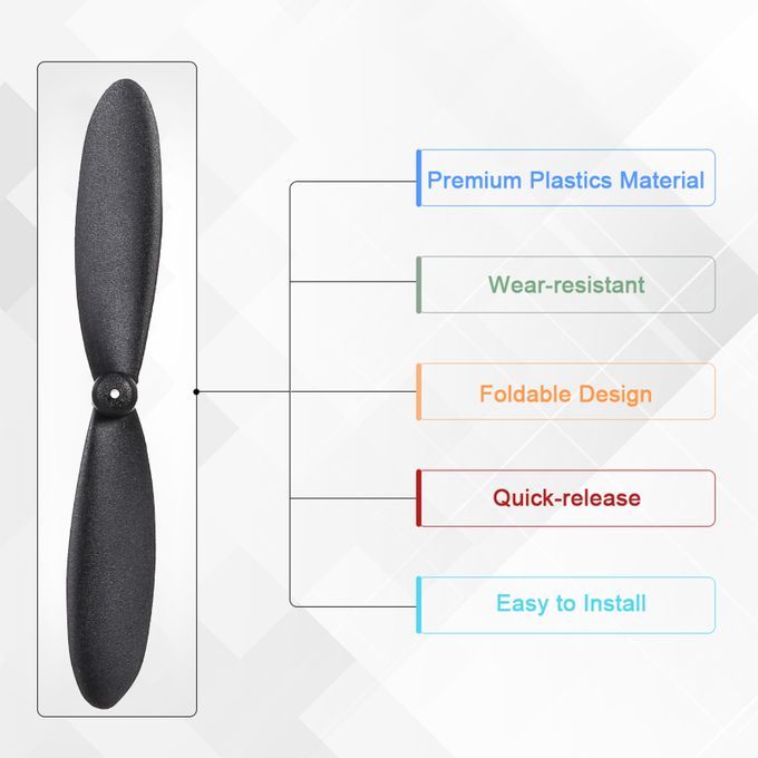 • Premium Plastics Material: Made of highly tough plastic, the propellers are wear-resistant, compact, portable thus save space.