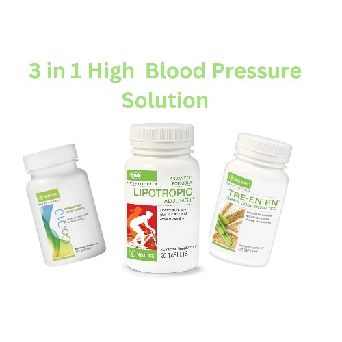 NeoLife 3 in 1 High Blood Pressure Solution is a powerful combination of Lipotropic adjunct, CoQ10, and Tre-en-en that work synergistically to support healthy blood pressure levels.