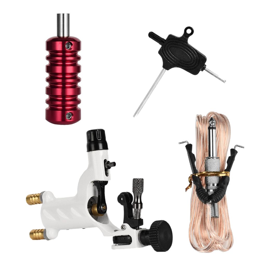 Complete professional tattoo machine supply kit for beginners, learners, tattoo artists.Professional rotary tattoo machine for lining shading coloring with stable voltage output and good heat dissipation.Lightweight and low vibration, can continuous work 4 hours without hand-tired.Quality tattoo hook line with better performance and solves the problem of motor will stop when hook line contacting the tattoo machine.Low noise, long-lasting stability, easy to assemble with wrench. A starter tattoo kit includes: tattoo machine, tattoo grip, wrench and hook line.
