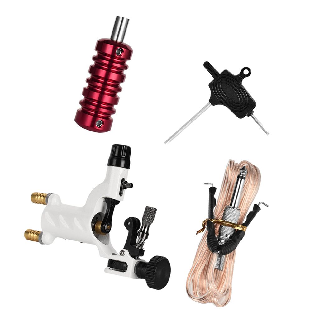 Low noise, long-lasting stability, easy to assemble with wrench. A starter tattoo kit includes: tattoo machine, tattoo grip, wrench and hook line.