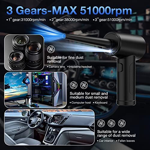- 3-Speed Adjustable Power: Compressed air dusters are equipped with 3 gears of air speed, 30-RPM speed seletion, generating inredible airflow, Perfet replaement for ompressed air ans. Great gift for family, friends, workman, mehani.