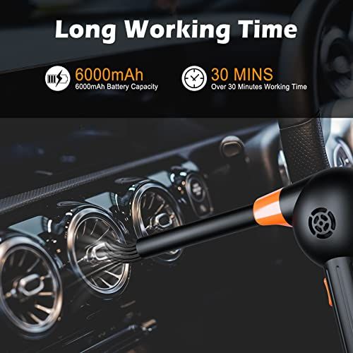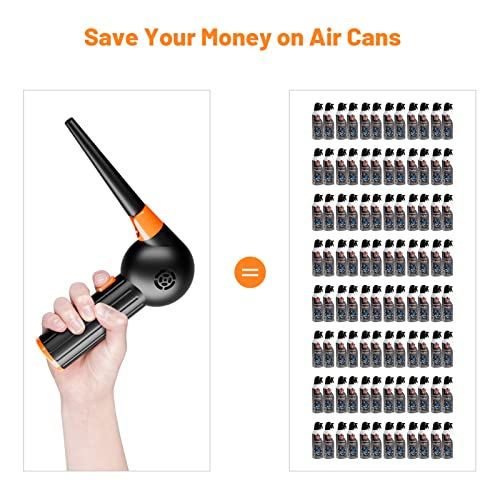 - [Save From Expensive Canned Air] Cost-effetive and reusable. Rehargeable air blower allows more than 00 times of use, fully harged (3H) an work ontinuously for 30 minutes. This is a one-time investment to save you from endless air ans.