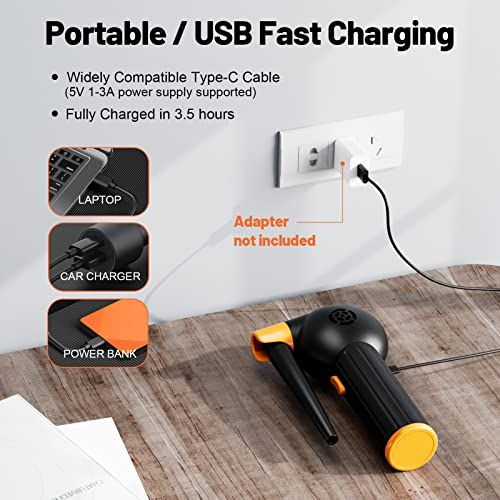 - [Cordless Eletri Duster] The JINJUNYE ompressed air duster with a 40000 rpm motor provides ultra-strong airflow (nearly 8m/s) for deep leaning of mirosopi dust. Comes with USB type-C fast harging able for a 30-min use. Could be harged by omputer, mobile power, ar harger, adapter.