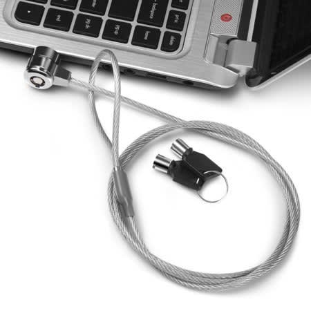 Wrap the 6 ft (1.83 m) vinyl-coated, galvanized steel cable around any secure object and attach to your notebook or tablet.
