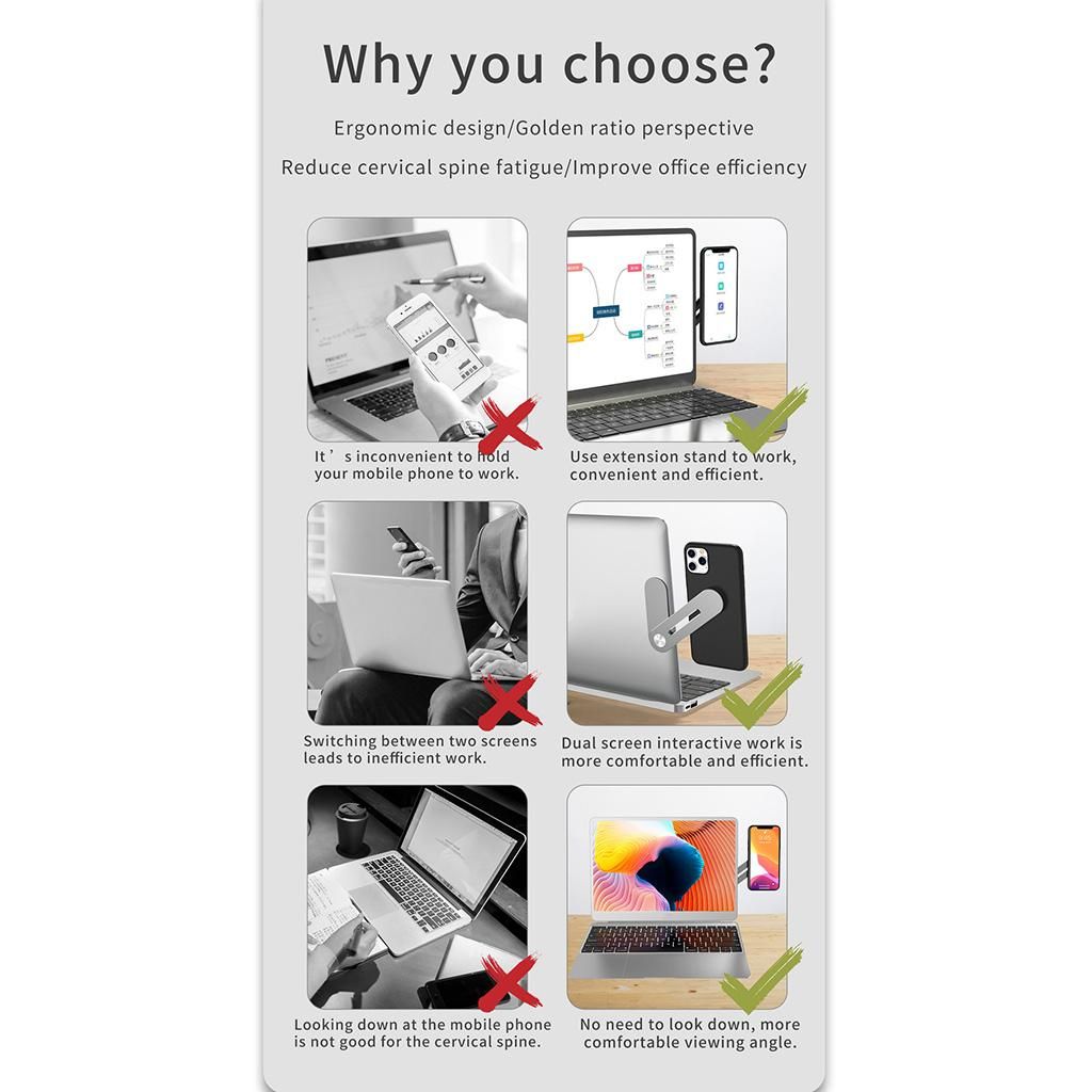 Laptop expansion bracket;Side Mount Magnetic Computer Cellphone Stand;Aluminum Shrink Phone Bracket;Flexible Laptop Expansion Cell phone Stand;PHONE Holder Fixed Flat Slim Safty Stand;Phone Laptop Multi-Screen Interactive Bracket