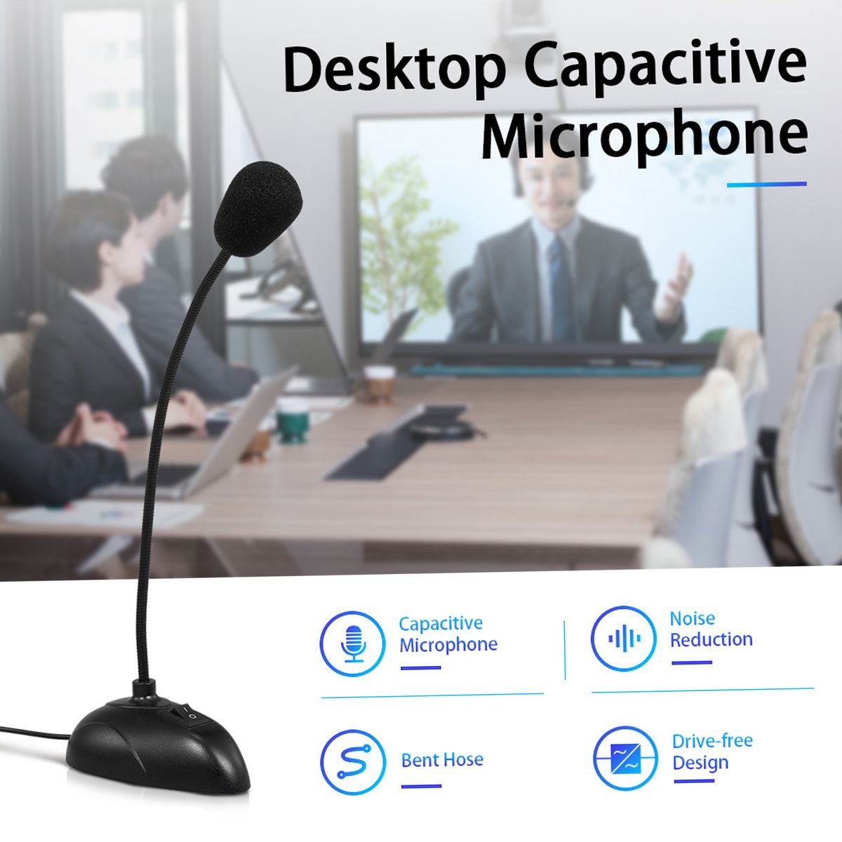 Hose design, the direction and angle of sound pickup can be adjusted according to different height and sitting posture, good sound pickup environment, not easy to damage, convenient and practical.
