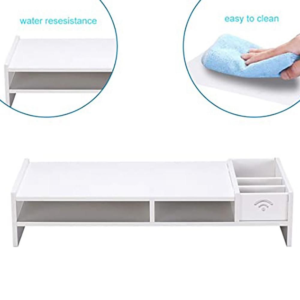 2. Desk Storage Tool - This monitor stand comes with multiple versatile storage spaces to store and organize items on your desk. It makes the office cleaner and allows you to work more efficiently.