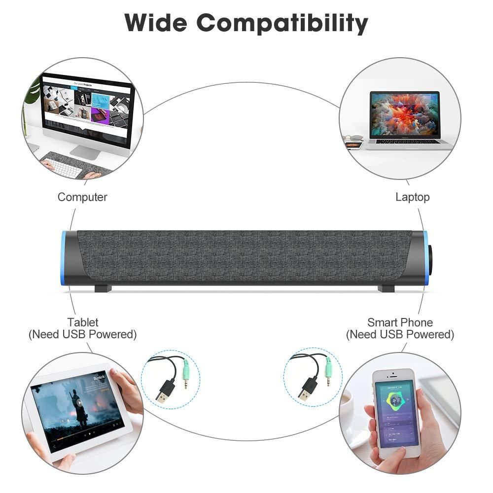 [Wide Compatibility]: The sound bar supports most of the devices with standard 3.5mm jack