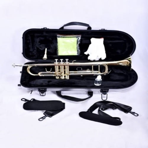 This is a high quality professional trumpet, it comes with the full trumpet accessories such as mouth piece, handglove, cleaning cloth, Belt and many more. The best for beginners and professional players. Best choice for trumpet lovers. Completely packaged inside black box for save handling.