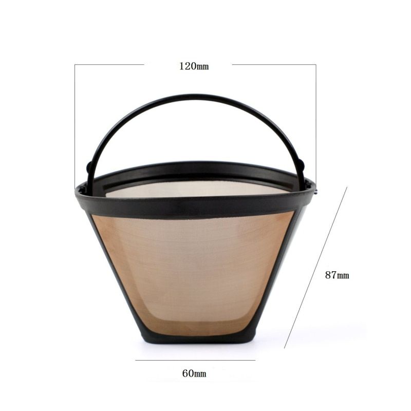 1X Cone-Style Reusable Coffee Filter Permanent Coffee Maker Machine Filter Gold Mesh With Handle Cafe Coffees Tools reusable cafe
