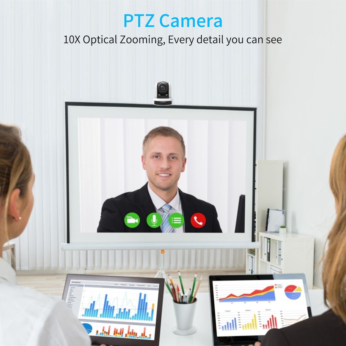 ➤ Adopting 1/2.8 quot; CMOS image Sensor, effective pixel 2.07 million and 10X optical zoom. Professional equipment with full HD 1080p conferencing camera for business meetings.