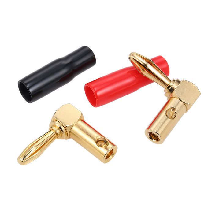 The right Angle banana plug supports the following functions: can accept naked wire, etc., can maintain proper polarity.