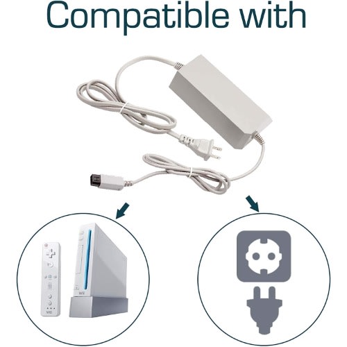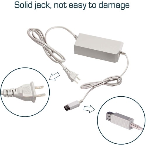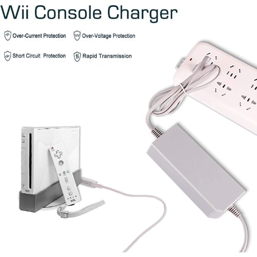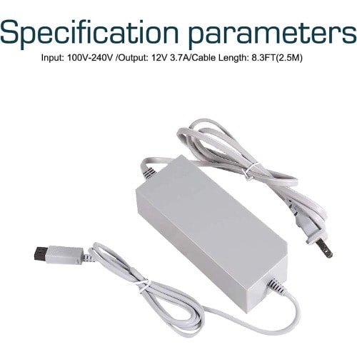 POWER SPECIFICATION - Input: 100V-240V; Output: 12V 3.7A; Cable Length: 8.3FT(2.5M); Material: Metal /+Plastic. flame resistance shell.PRODUCT COMPATIBLE - Specially Made for Nintendo Wii Console. Ideal quality replacement or backup power AC adapter for your Nintendo Wii Console.HIGH QUALITY - Made from durable material for long time use, and with auto voltage feature that allows the adapter to be used worldwide. against Over-Heated/Over-Current/Over-Voltage/Short-Circuit.EASY TO USE - Durable power adapter allows you to have maximum portability and game time, seamless plug and play charging, extended life guarantee.