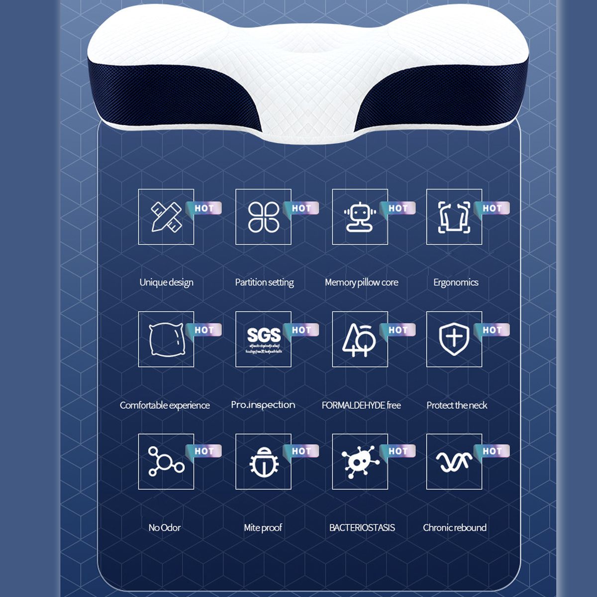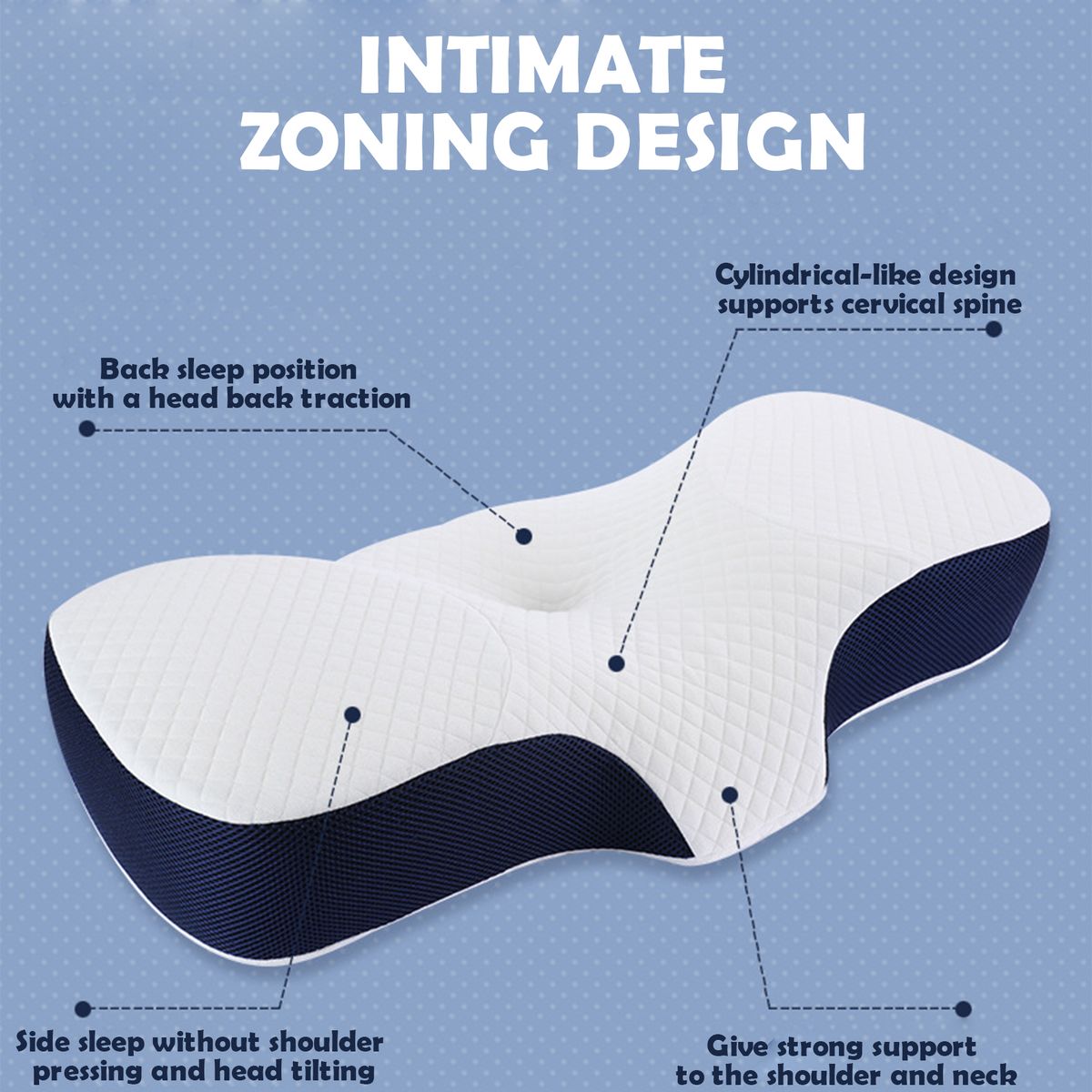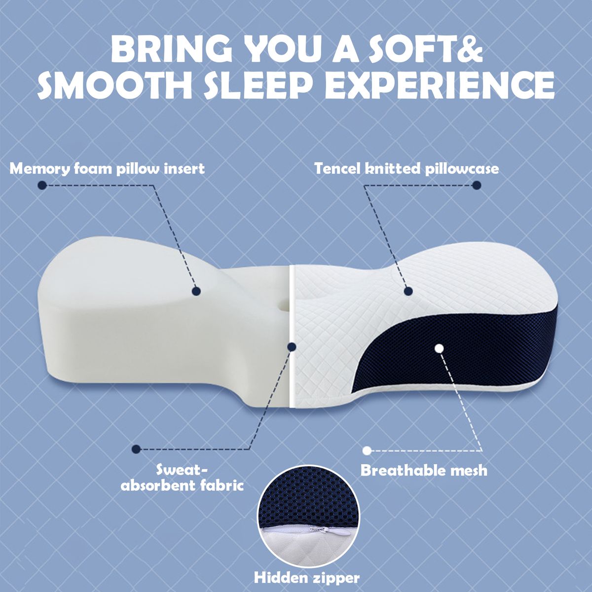 The cylindrical-like slope design assists in supporting the cervical-spine. The elevated flat design on the sides gives your shoulder and neck all-around support without shoulder pressing and head-tilting when on the side sleep position.