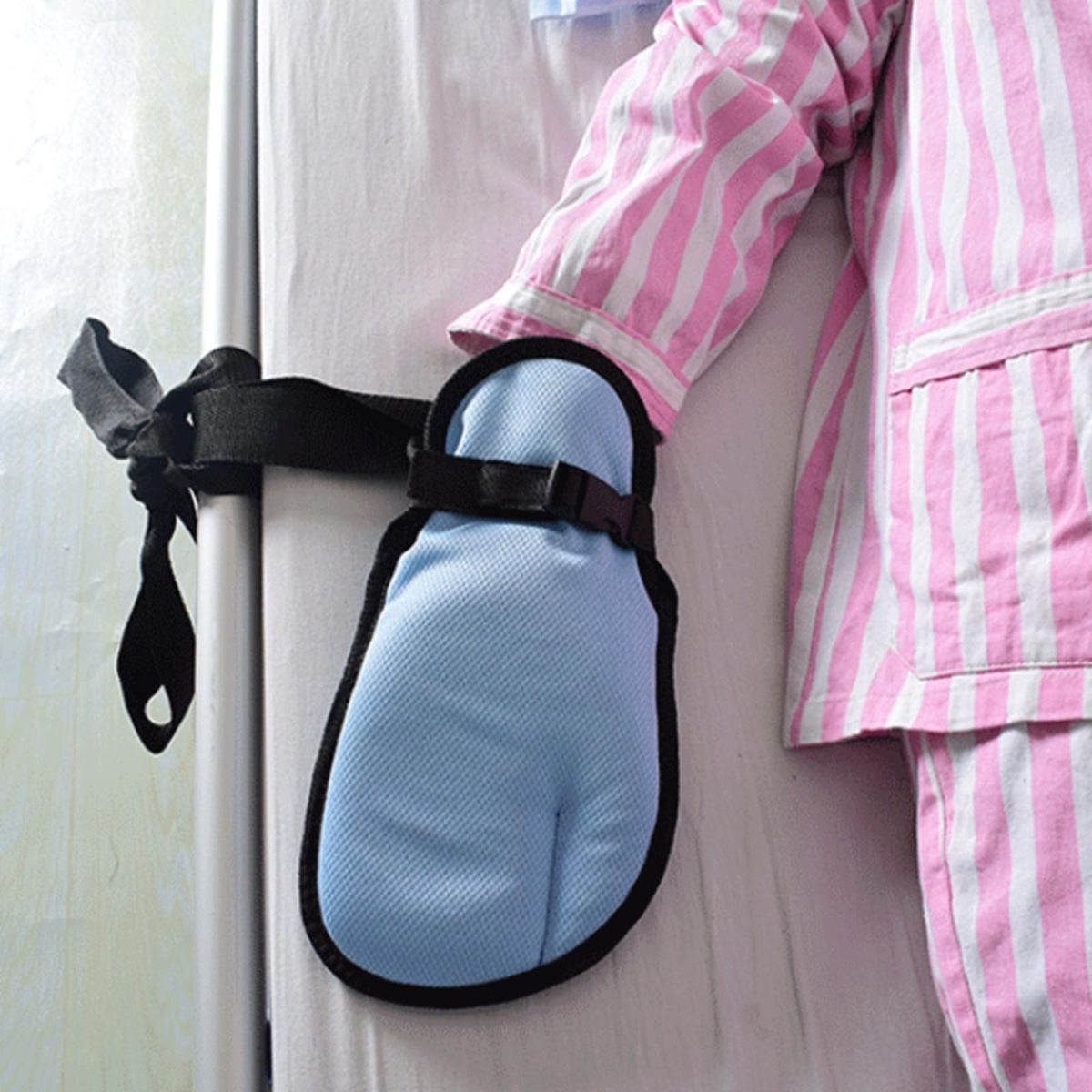 Fit for hospitalized patients: to prevent patients from randomly pulling out needles to increase the repeat tube rate; dementia personnel:to prevent disorderly grasping food and not cooperating with treatment due to disorders