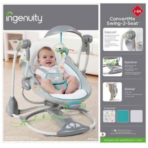 Designed with Parenthood in mind, ingenuity convert me swing to seat is two amazing seat in one. This swing converts effortlessly to a seat with soothing vibrations. It entertains baby with 5 swing speed, 8 melodies and 3 nature sound. A pivoting leaf like toy bar offers 2 plush toys and 3loops for attaching more toys. The tasteful Orson fashion is rich with embroidery and detailed embellishments. It is perfect for a boy or a girl. This portable, convertible swing features neutral, modern fashion and deluxe features that makes life easier for Mom and relaxing for babies.Designed with Parenthood in mind, ingenuity convert me swing to seat is two amazing seat in one. This swing converts effortlessly to a seat with soothing vibrations. It entertains baby with 5 swing speed, 8 melodies and 3 nature sound. A pivoting leaf like toy bar offers 2 plush toys and 3loops for attaching more toys. The tasteful Orson fashion is rich with embroidery and detailed embellishments. It is perfect for a boy or a girl. This portable, convertible swing features neutral, modern fashion and deluxe features that makes life easier for Mom and relaxing for babies.
