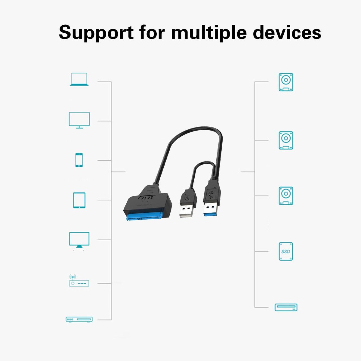 By supportingHDD and SSD, this product allows you to easily connect the hard drive through USB port as an additional external hard drive to read and backup data, transfer files.
