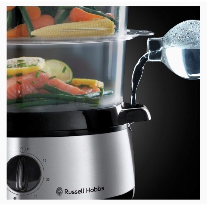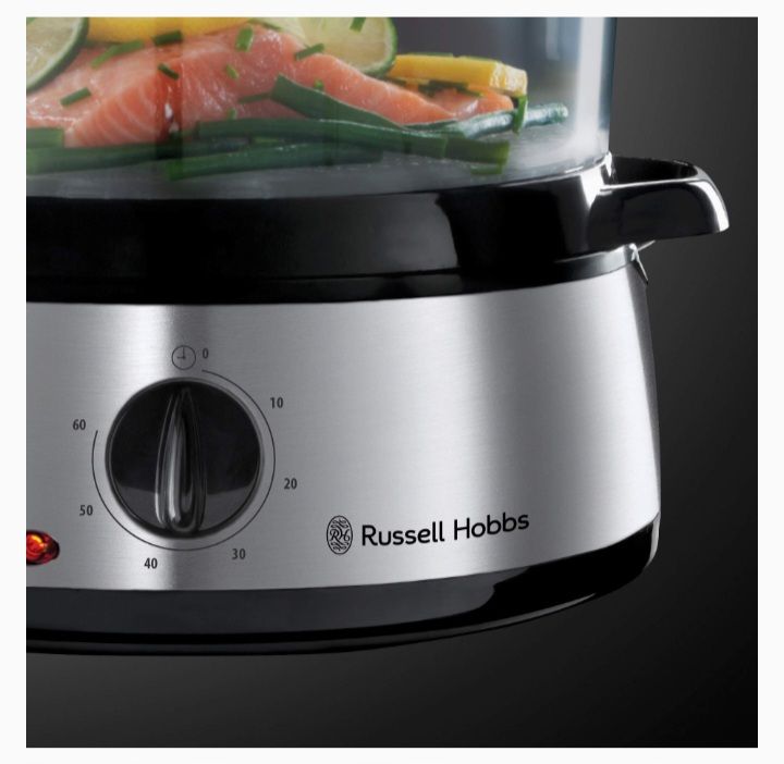 The Russell Hobbs Cook At Home Food Steamer is the smart and healthy way to steam food, retaining the maximum amount of nutrients and vitamins. Three steam baskets allow for cooking different foods at once, including rice, vegetables and fish.
