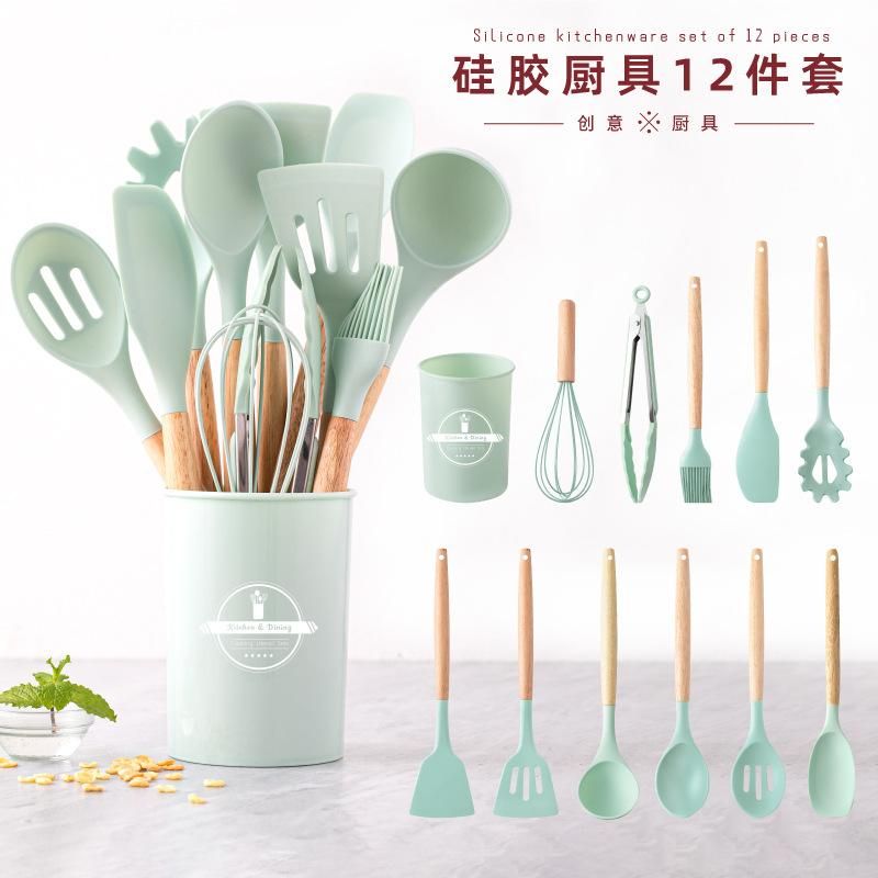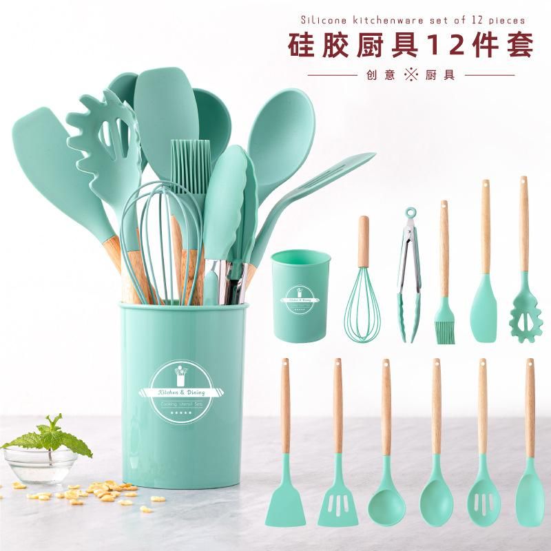 Buy Cooking Non-Stick Pan Storage Barrel Wooden Handle Silicone Kitchens 12-Piece Silicone Kitchens 11-Piece Set in Nigeria